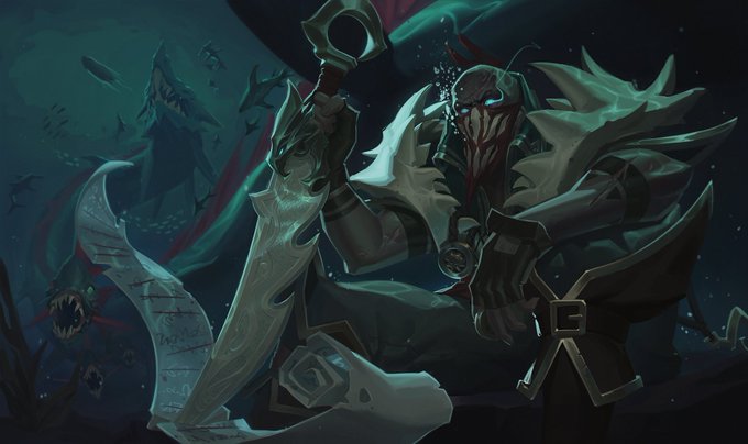 Day 16 - Ocean Song Pyke Bro here really needs a not super edgy skin .. make it a thirsttrap it'll sell just as much #conceptober2022 hosted by @EraiViolett #LeagueOfLegends #ArtOfLegends #Pyke