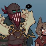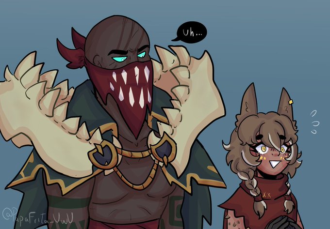 These are so funny to make, gimme some more champs (humans too this time) bc I'm going to make more prob !!! :')) #Artoflegends #Sett #Ahri #Pyke #Xayah twitter.com/SuccubaRossa/s…