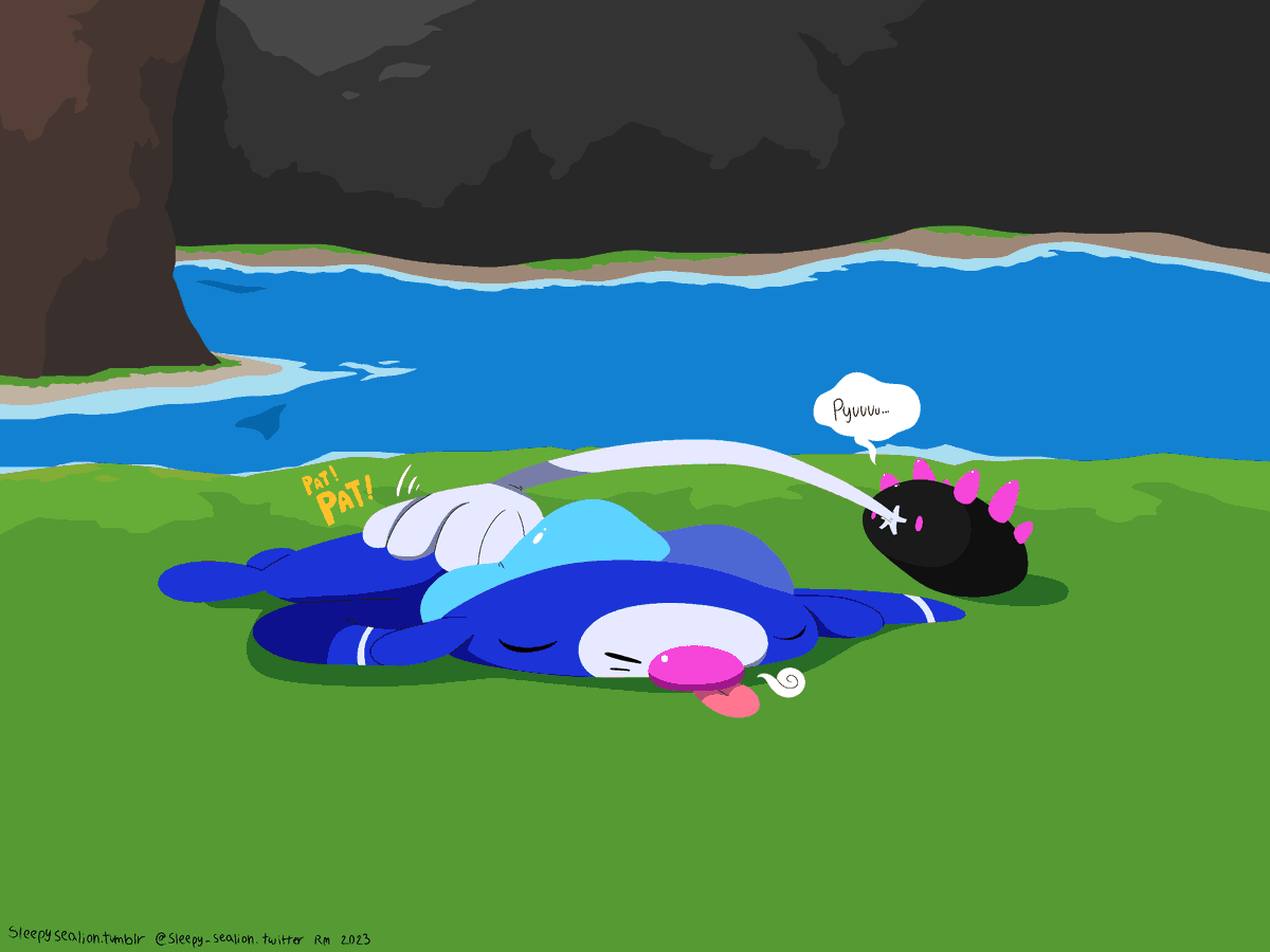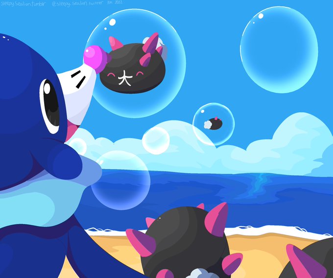 These little guys have a long way to go to get back to the water, but Popplio is always happy to help! #pokemon #pokemonfanart #pkmnart #popplio #pyukumuku