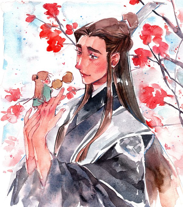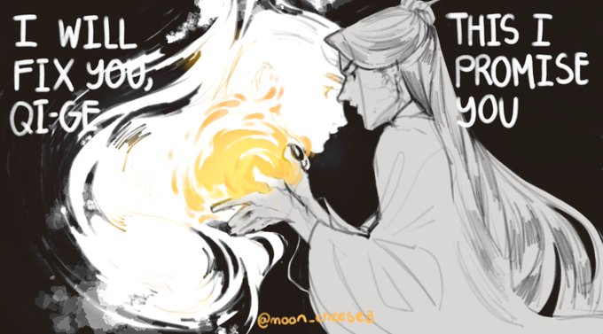 Sj's soul was yeeted out of his body by system, but didn't depart, staying around; Once yqy finally verbalized why he didn't come back, sj's soul found the strength to materialize as small jiu... from the tip of yqy's torn red string of fate! Tied together 🎀 Happy #qijiuweek2022