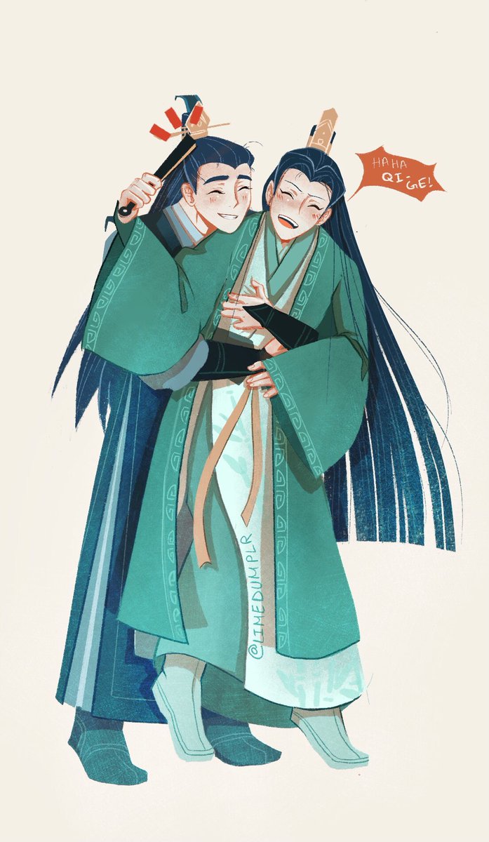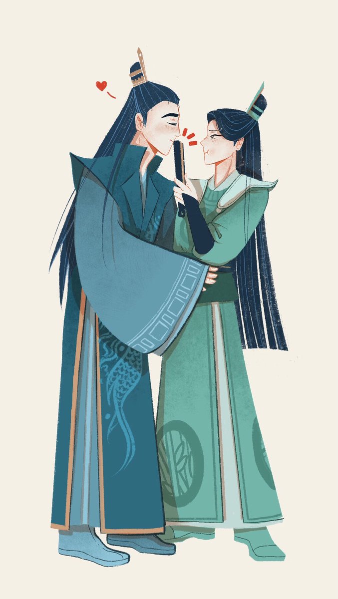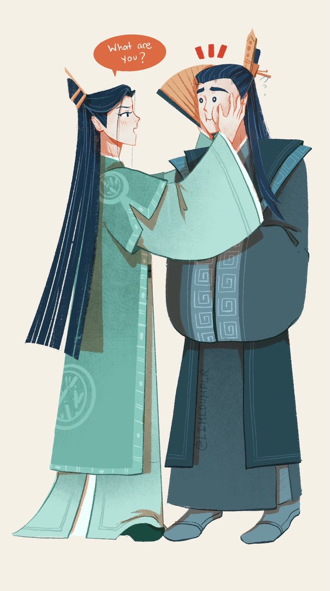 Day 1 of #qijiuweek2022 🎉 I’m not gonna follow the prompts this week 😅 Instead I’m gonna make SJ *boop* YQY with his fan every day for the next week 🥰🥰 here’s Boop #1! Qi-ge looks pretty happy about it 👀👀 #ScumVillainsSelfSavingSystem #svsss #shenjiu #yueqingyuan