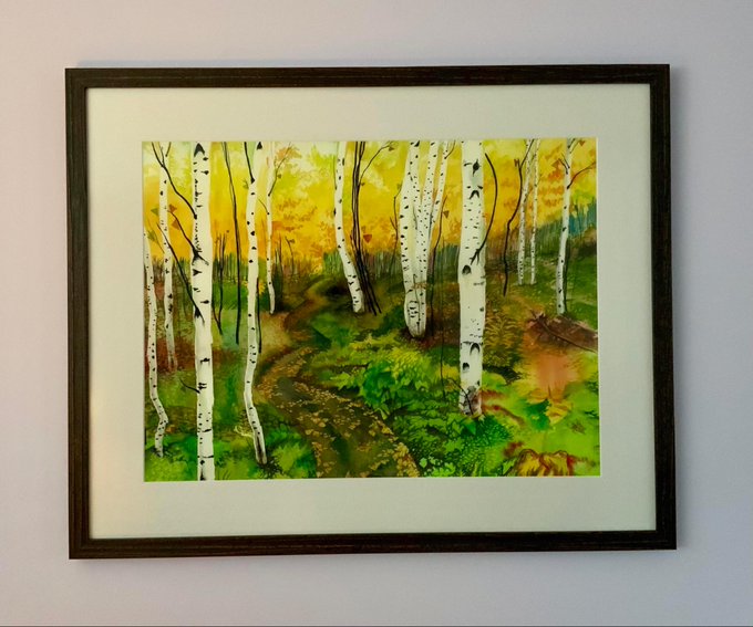 Wonder what the art print looks like? Here is one framed. Photo unedited. Really great print to liven up a really bland room. The original art & prints are up in my shops. #forests #NatureBeauty #nature #wallart #artwork #painting #illustration #AutumnVibes #quebec #canada
