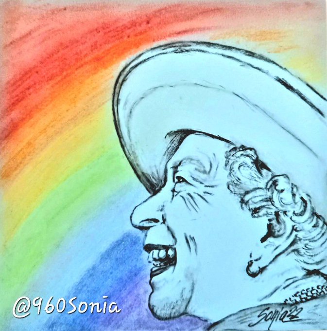 I colori nei tuoi abiti erano messaggi silenziosi oltre a distinguerti nella "folla" della tua corte 😉🌈 🥀 Goodbye Your Majesty, i colori e il tuo sorriso resteranno vivi nella mia memoria #ReginaElisabettaII #QueenElizabethII #artistsontwitter