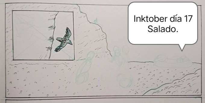 Día 17, se inicia otra viñeta con un fondo "salado". m.twitch.tv/vida7vinyetas #Inktober22 #inktoberday17 #inktober #vida7vinyeta #quickdrawing #quicksketches