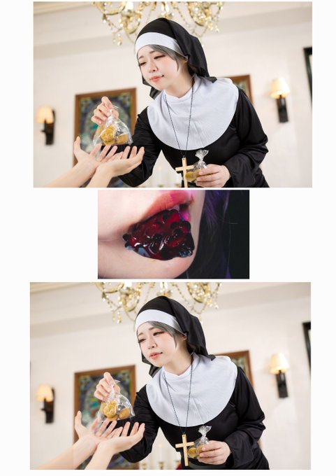 日曜日になるとあのシスターは手作りのクッキーを村人に振る舞う 『血の滴ったような気味の悪いものをよく喜んで貰うものだ』 それを聞いた村人は訝しげな目で私を見る・・おかしいのは私の目なのだろうか #R5シスター悪魔併せ