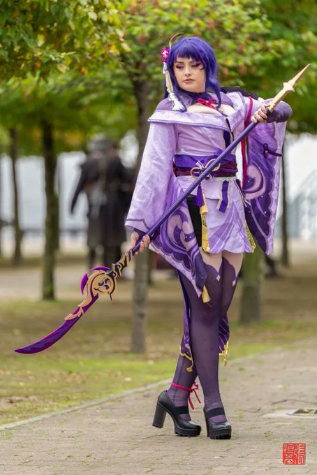 "Rainfall alone does not constitute a storm. Thunder is required." #RaidenShogun / #GenshinImpact #Cosplay by @Snowflakehime Photos by @FoodAndCosplay Taken at @MCMComicCon London 21 #raiden #raidenshoguncosplay #raidenshogungenshinimpact #genshinimpactcosplay