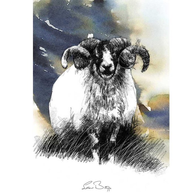 Speckled faced ram sketch from artist Sean Briggs no 2911 #ram #art #drawing #sketch #illustration #print seanbriggs.co.uk/product/speckl…