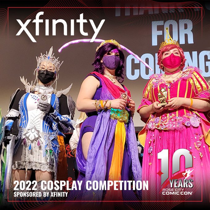 Don't miss the 2022 Cosplay Competition on Saturday at #RoseCityComicCon—sponsored by @Xfinity! Featuring Special Guest judges #TheHonestCosplayer (2021's Best in Show), @ourshieldmaiden, and @SionnachStudios! #Xfinity #RCCC22