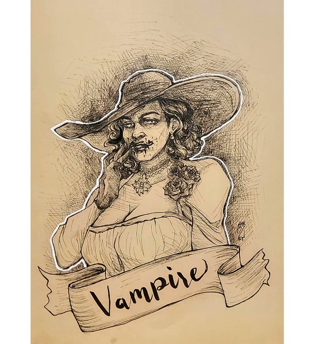 Witchtober Day 7. Vampire it's Vampire on Witchtober prompt. How do you expect me not to draw my Lady D? #witchtober #witchtoberday7 #vampire #witchtober2021 #witchlistge #drawtober #inktober2021 #residentevilvillage #LadyDimitrescu #alcinadimitrescu #REBHFun #blazingsazadraws