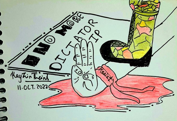 Day11, Resist 1 day late 😁, day 12 will be post on evening. #revotober #revotober2022 #revotoberday11 #inktober #inktober2022 , #resist #whatshappeninginmyanmar #whatshappeningnowinmyanmar #rejectmilitarycoupmyanmar