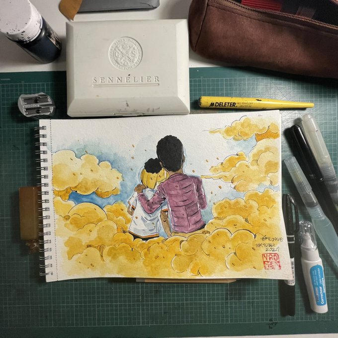 Et voilà l’épilogue pour #inktober2021 #drawing #watercolor #characterdesign #reunion #illustration #calm #heaven