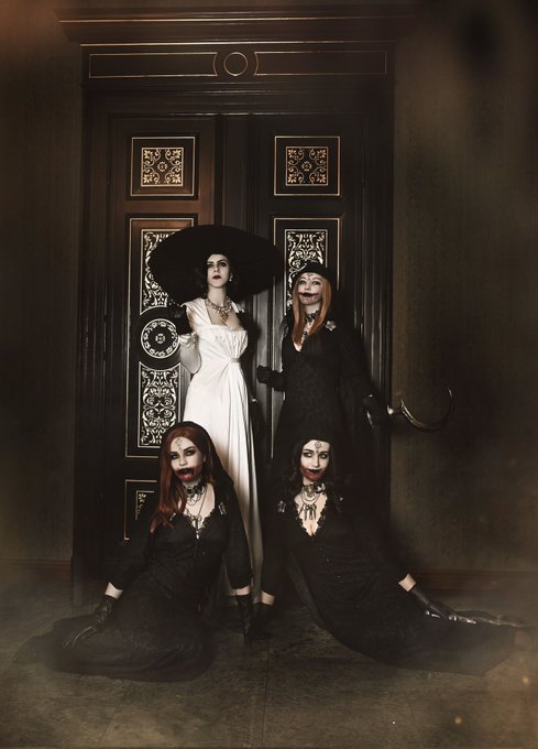 Nothing suspicious here, just normal and happy family 🤭 📷: wer.s.photos Daniela - @rebelmajek Bela - @xpurrika Cassandra - @Yarpenna #REBHFun #ResidentEvil #ResidentEvilVillage #revillage #capcom #cosplay