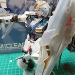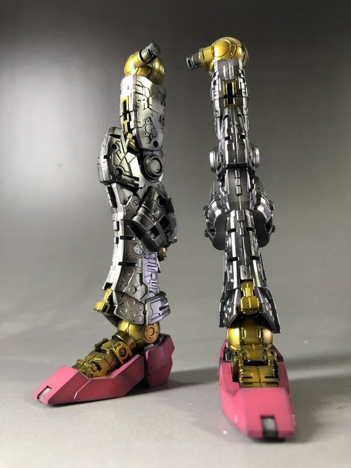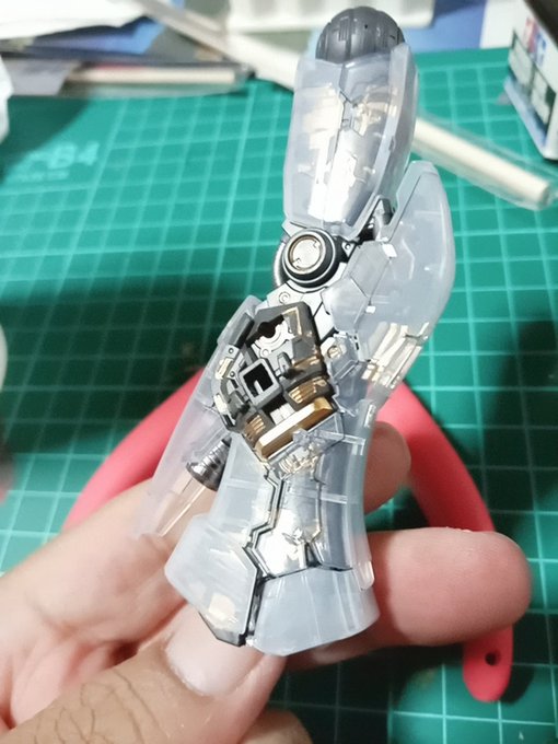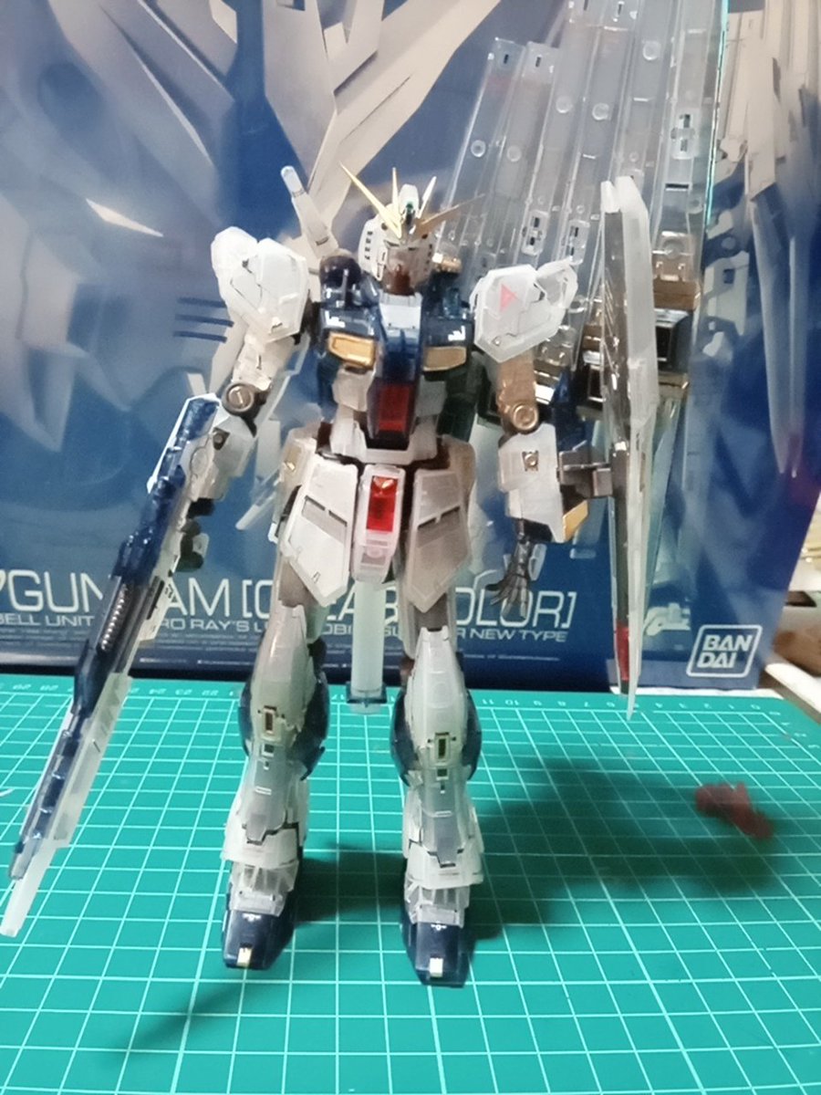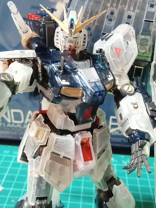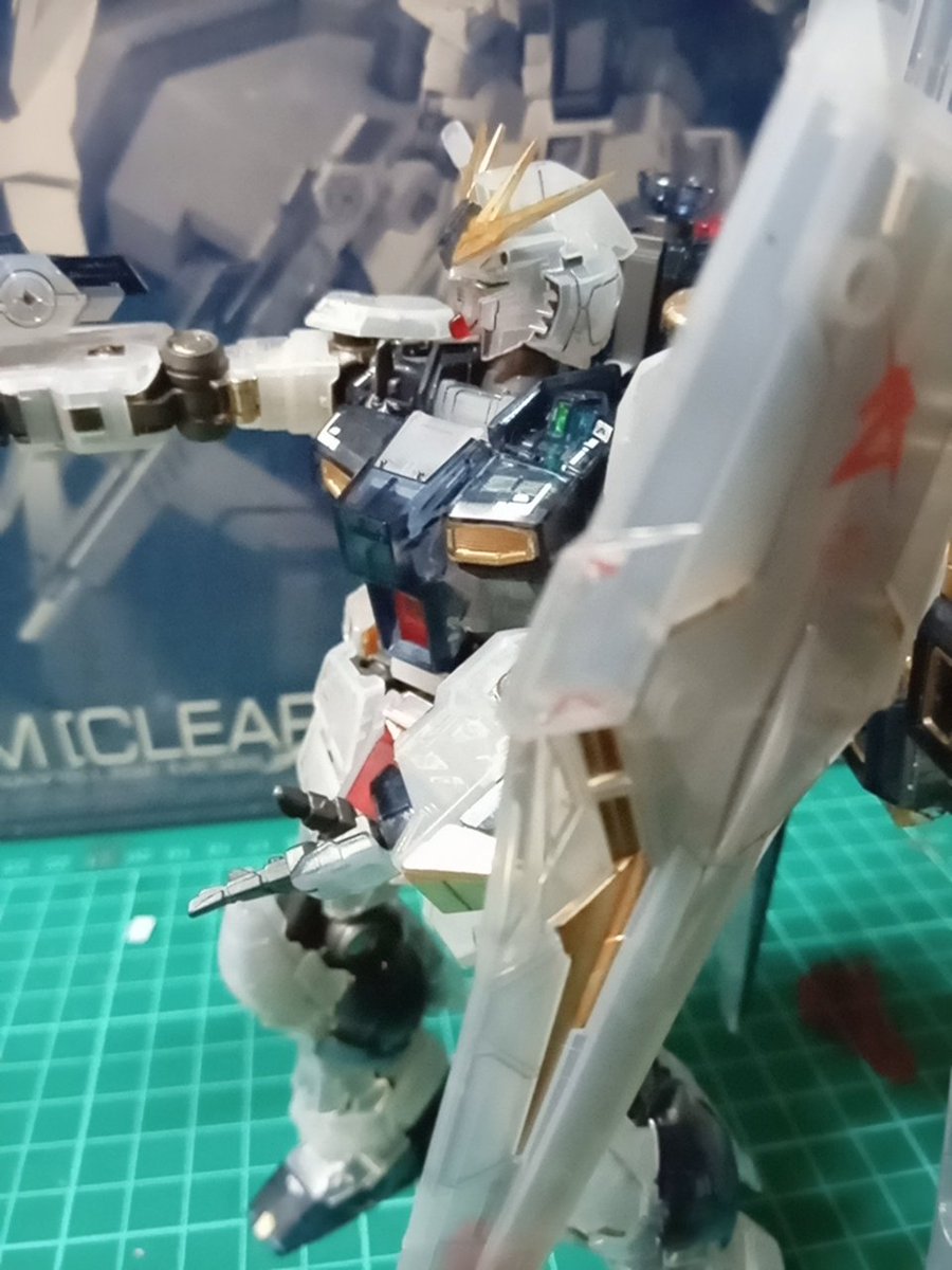 クリアカラーを活かすため、内部フレームを金色で部分塗装してみた #ガンプラはどんな自由な発想で作ってもいいんだ #ガンプラ好きな人と繋がりたい #ガンプラの画像を貼るとRTされると聞いて #RGνガンダム