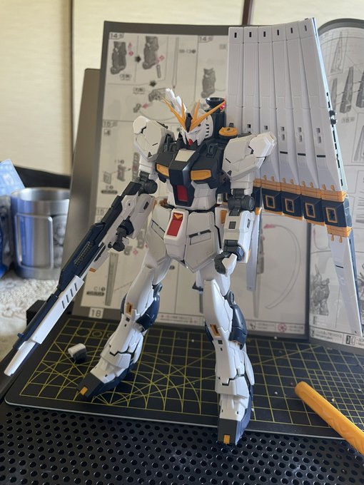 やっとこさ完成したRGνガンダムsideF … デカール多すぎw νガンダムも増えたなぁ かっこいいから仕方無し! #ガンプラの画像貼るとRTされると聞いて #ガンプラ好きと繋がりたい #RGνガンダム