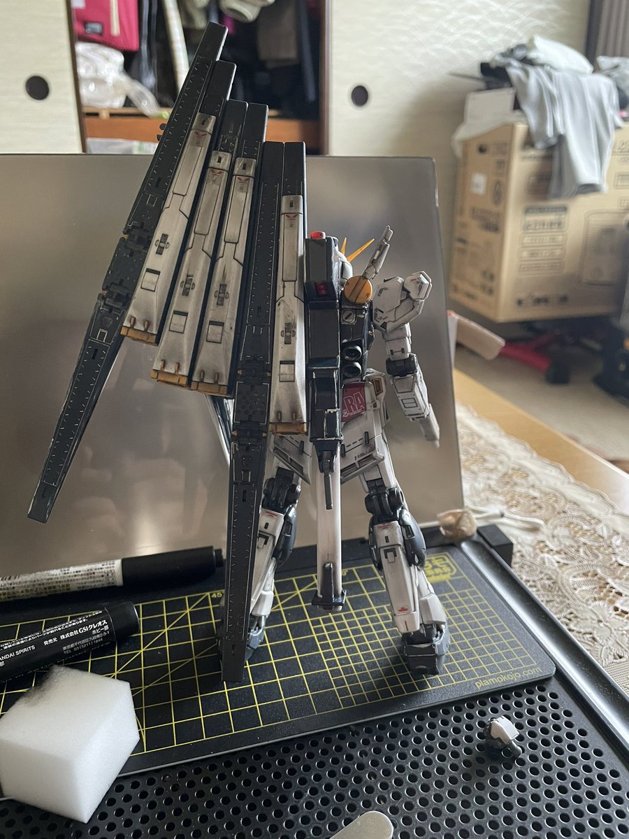 RG νガンダム チタニウムフィニッシュ ヤベェ RGは2体目だけど‥このプロポーション惚れるわw 塗装の待ち時間でフィンファンネルと武装は組んでるので‥ラストはバックパック行きます! #ガンプラの画像を貼るとRTされると聞いて #ガンプラ好きな人たちと繋がりたい #RGνガンダム