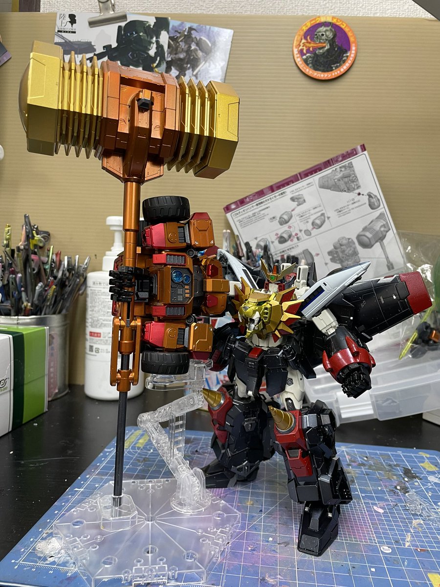 #今月作ったプラモ晒そうぜ ミキシングで作った #境界戦機 と #RGガオガイガー ですかね。 今月は少なかった。 #勇者王ガオガイガー 大好きなので、じっくり丁寧に、 #筆塗り で仕上げています。