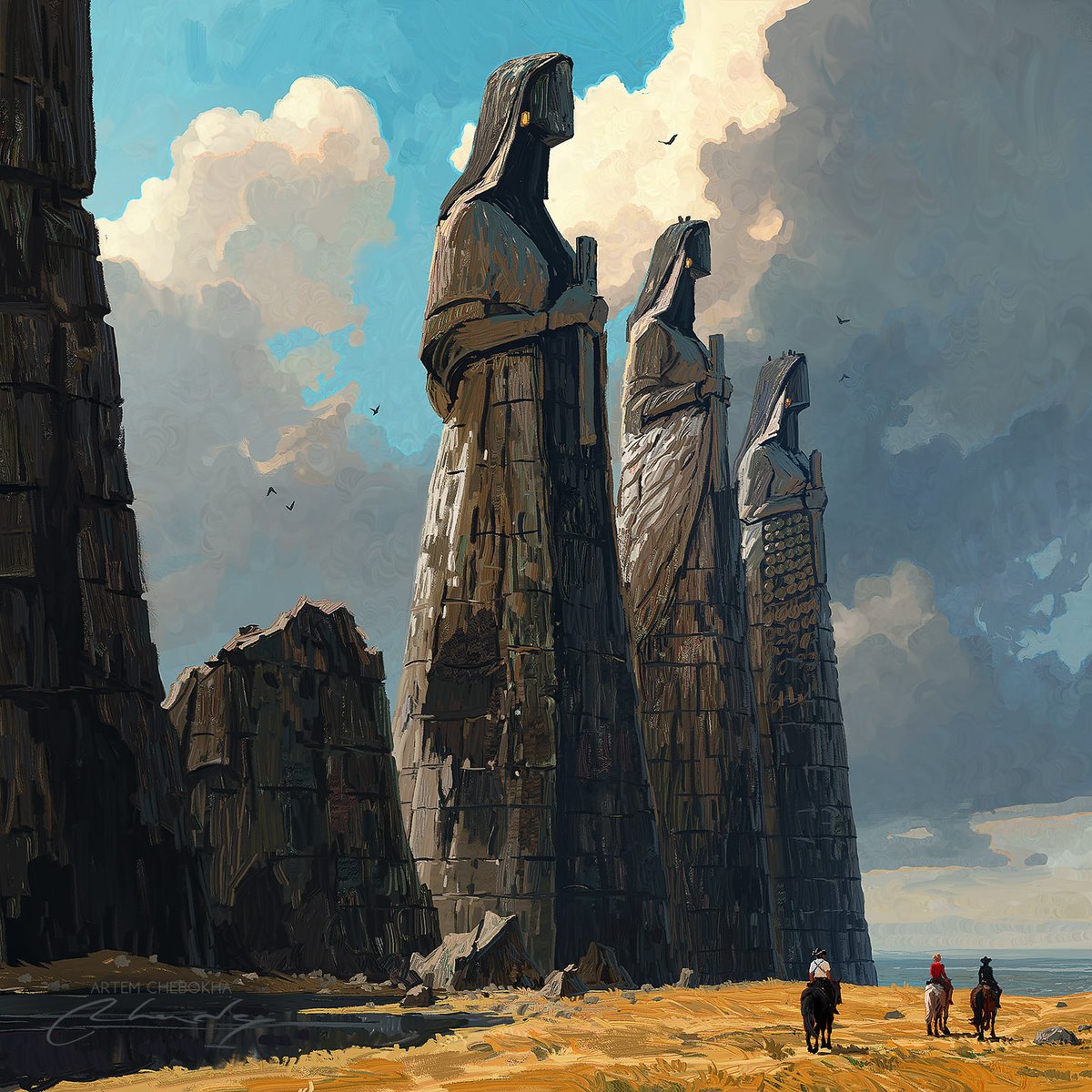 "Far Lands. Valley of Sisters" "-I wonder who they were? -Maybe priestesses of some cult or widows waiting for those who went off to war and didn't come back. One way or another, scientists are going to have to figure out" #RHADS #DigitalArt #far_lands