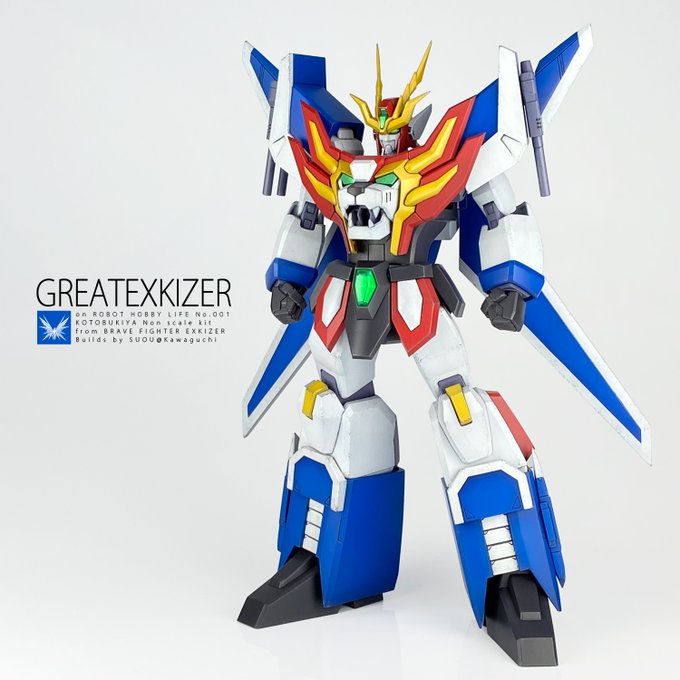 ロボットホビーライフ001にて、グレートエクスカイザーの作例を担当しました。 アニメ作中の画に寄せつつ「人格を持ったロボット」というキャラクター性をイメージしてみました。 誌面では力強いポージング写真満載なので、ご覧いただければと!よろしくお願いします! #RHL #ロボットホビーライフ