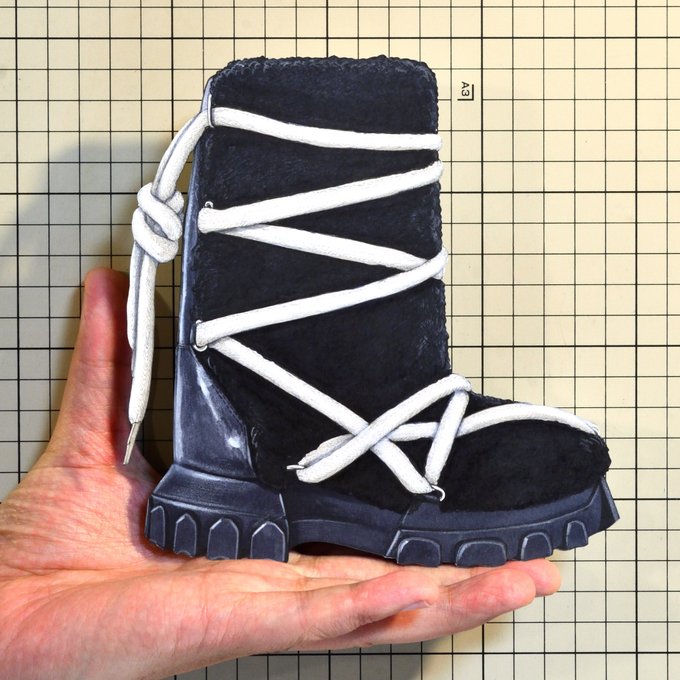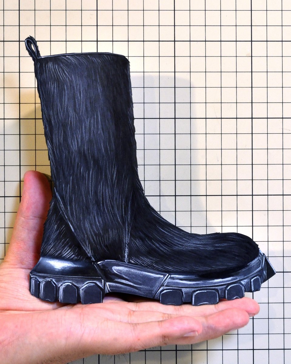 【今日の靴】02075足目 “Rick Owens” Leather-Trimmed Shearling Boot #RICKOWENS #illustration #copic #copicmarkers #切り絵 #イラスト #コピック