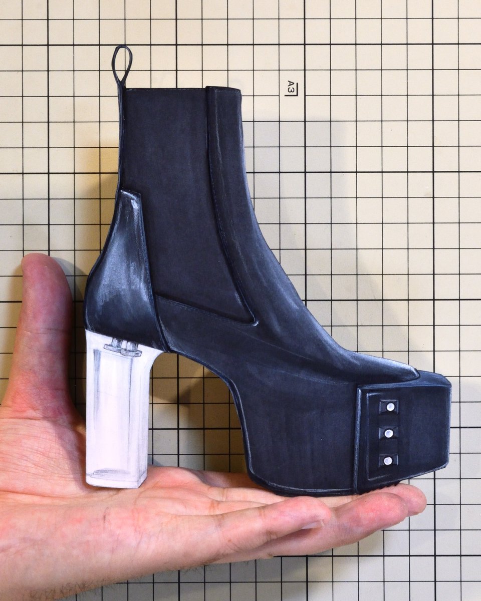【今日の靴】01735足目 “Rick Owens” Studded Leather Platform Chelsea Booot(FW2021) #RICKOWENS #illustration #copic #copicmarkers #スニーカー #切り絵 #イラスト #コピック