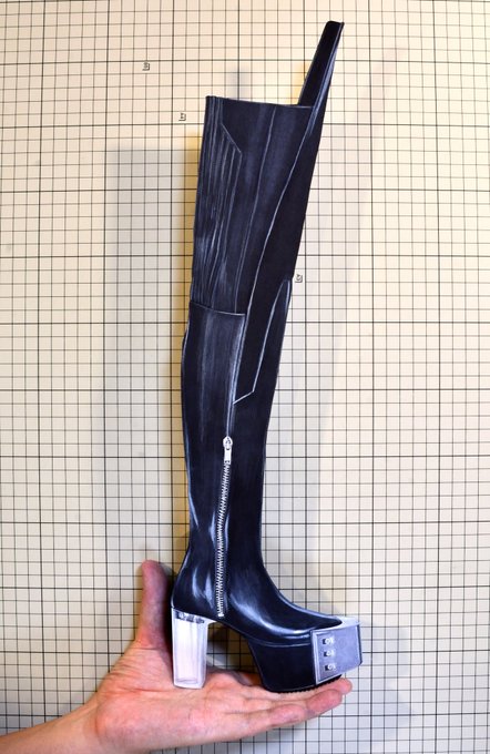 【今日の靴】01736足目 “Rick Owens” Black Thigh High Wader Tall Boot(FW2021) #RICKOWENS #illustration #copic #copicmarkers #スニーカー #切り絵 #イラスト #コピック