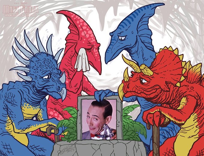 I just wanted to share this little sketch of the Dinosaur Family remembering PeeWee... #RIPPaulReubens