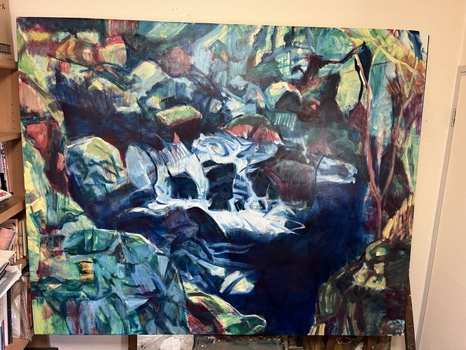 This is my painting "Take A Deep Breath". The original is for sale (please DM me if interested!) and you can also find very nice prints of it here: fineartamerica.com/featured/take-… #art #painting #oleo #artprints #originals #artforsale #ravine #rocks #river #landscape #stripes