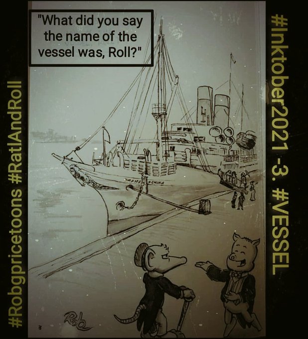 All aboard for day 3 of #inktober 2021! Today's word is #vessel and here we have a depiction of the #RMS Princess of China! #comicart #comicstyle #inksketch #Comics_are_art #improv #cartoonstyle
