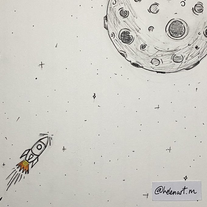 Day 7: Trip 🚀 Trip to the moon!🌕 Today’s drawing is a bit simpler yet I hope you like it! :)🫶✨ (Sorry si posted later today 😅😓) #Inktober #inktober2022 #inktoberday7 #Inktober2022trip #space #moon #rocket @inktober #art #ArtistOnTwitter #ink