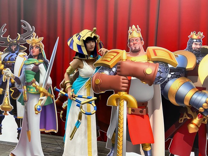 クレオパトラの姿になりました…! メイクめちゃ難しかった…!!!なによりも同盟メンバー、ライキンプレイヤーさんにいっぱい会った!!!!ありがとうございました!今日は、城スキンもクレオパトラ仕様にしてました😹 #RoKJapan3周年 #ライキン #ROK