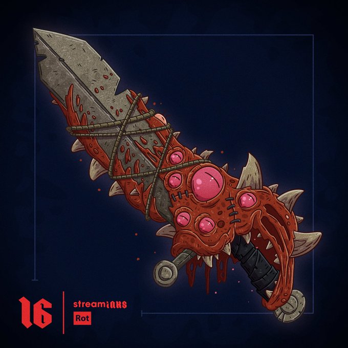 Theme of the day was #Rot and I resisted the urge to make a Elden Ring inspired sword and did this Decaying Sword instead (tho partially inspired by ER's living pots, so I guess I didn't escape ER influence entriely) #swordtember