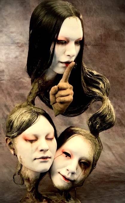 私の作る作品は、その地に残る記憶や穢れをテーマにする事が多い💀 🔴2019年作 【幽魂】 3猿をモチーフにした作品🙈🙉🙊 見てしまった、聞いてしまった、言ってしまった遊女たちは… #RTで私を有名にして下さい #呪物