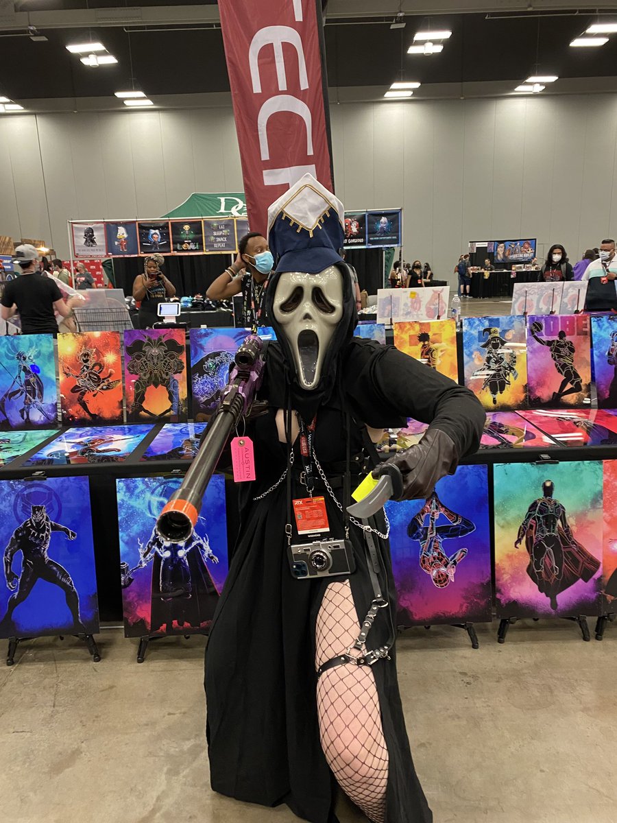 Had a blast at #RTX2022 got to do a dumb little ghost daddy cosplay. So many amazing cosplays and we definitely spent a fortune there on art but we loved it ! #RTXAustin #Ghostface #scream #arcane #cosplay