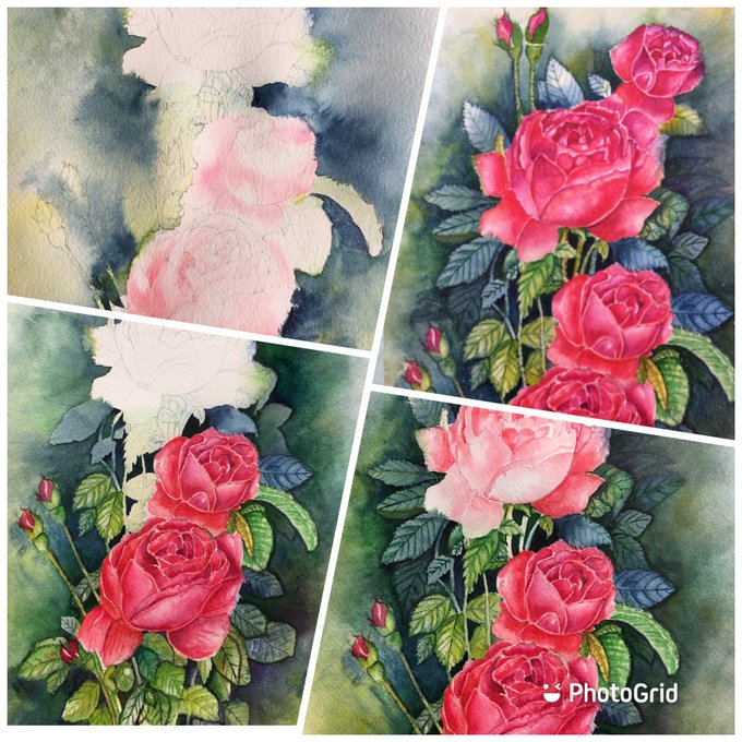 Thanks for all #Rts & #likes. Here goes the #stepbystep #Watercolour #painting #roses #watercolor #art #artshare @StCuthbertsMill 300 gsm c.p #ArtistOnTwitter #bigartboost #Flowers #Artists @jacksons_art #aquarelle @ktboldy @artpublishing @AandImagazine
