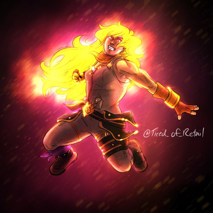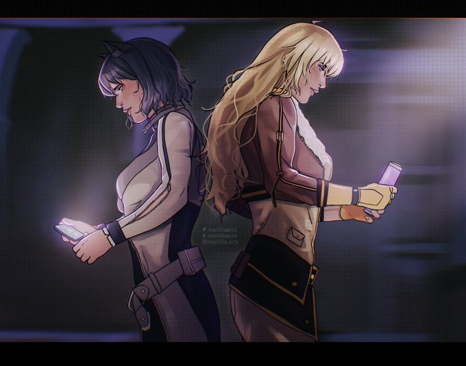 A drawing I made when volume 8 aired and that I still like. 💜💛 #bumbleby #RWBY #RWBYfanart #RWBY8 #YangXiaoLong #BlakeBelladonna