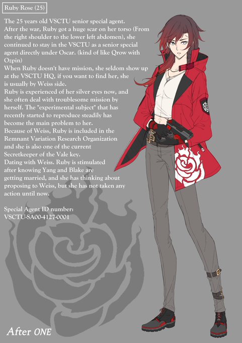 25 years old VSCTU senior agent and her Professor/branch leader GF #RWBYAU_AfterONE #whiterose