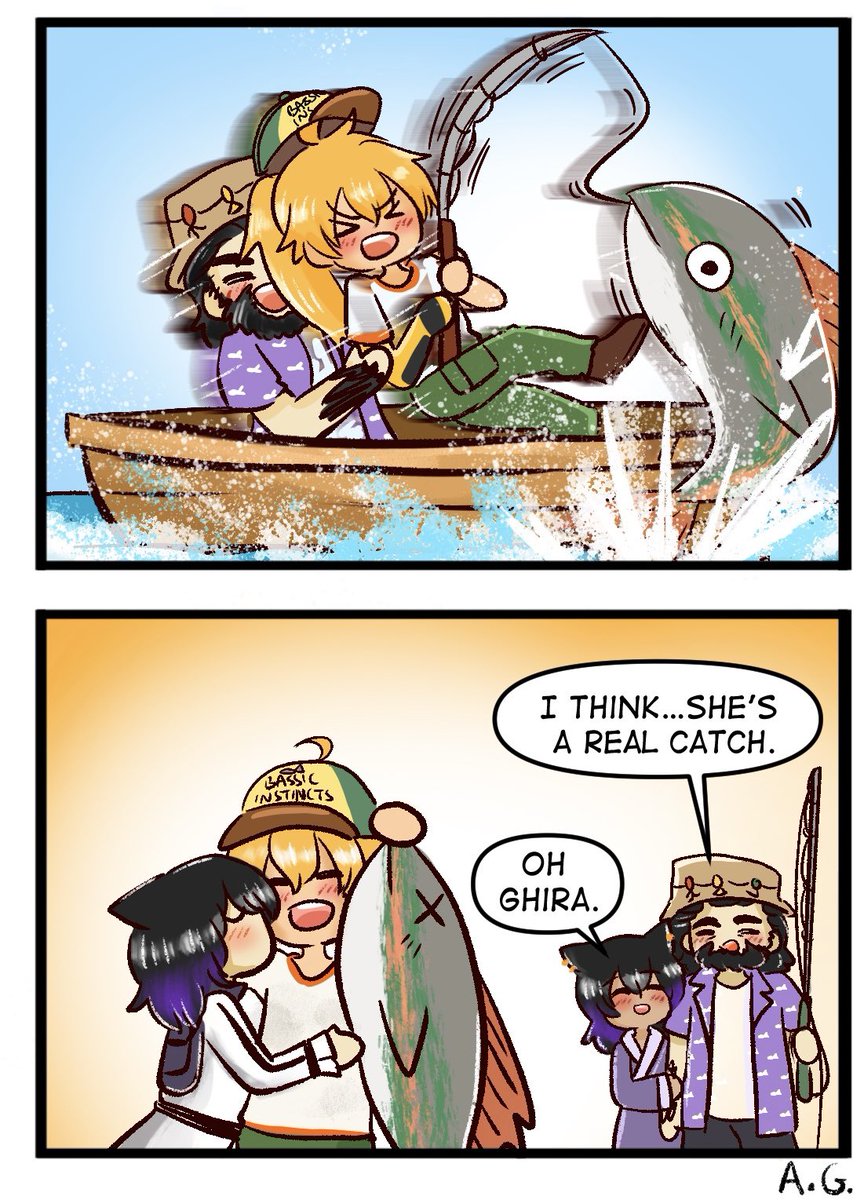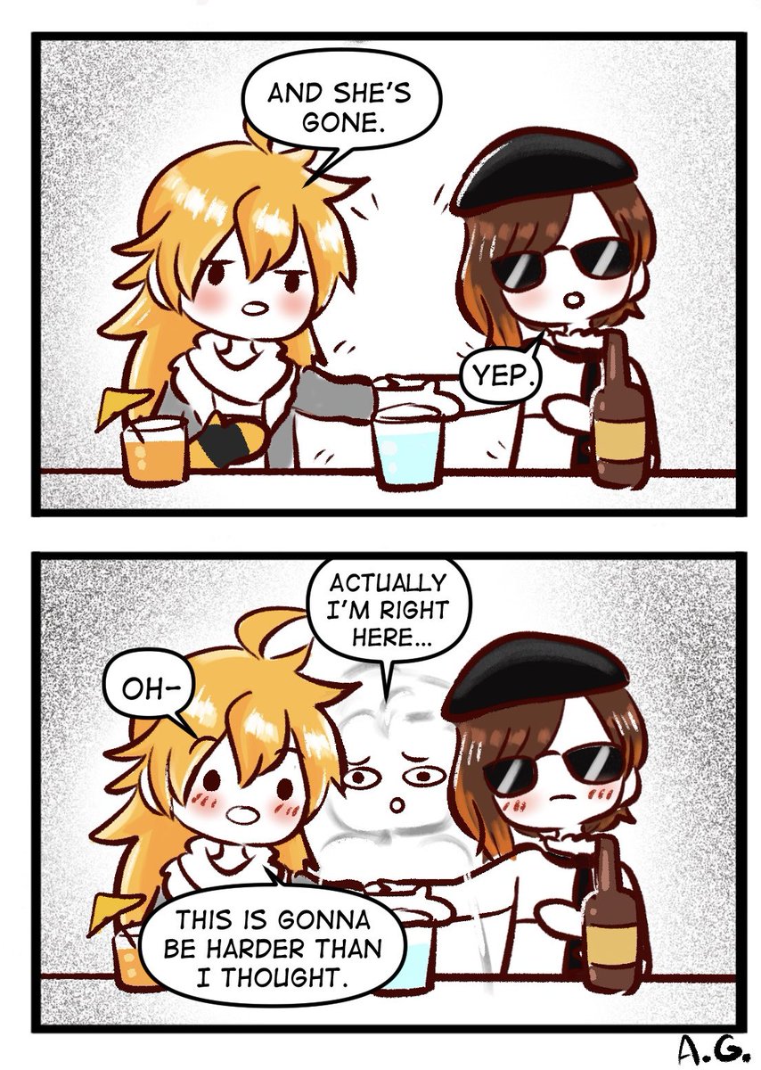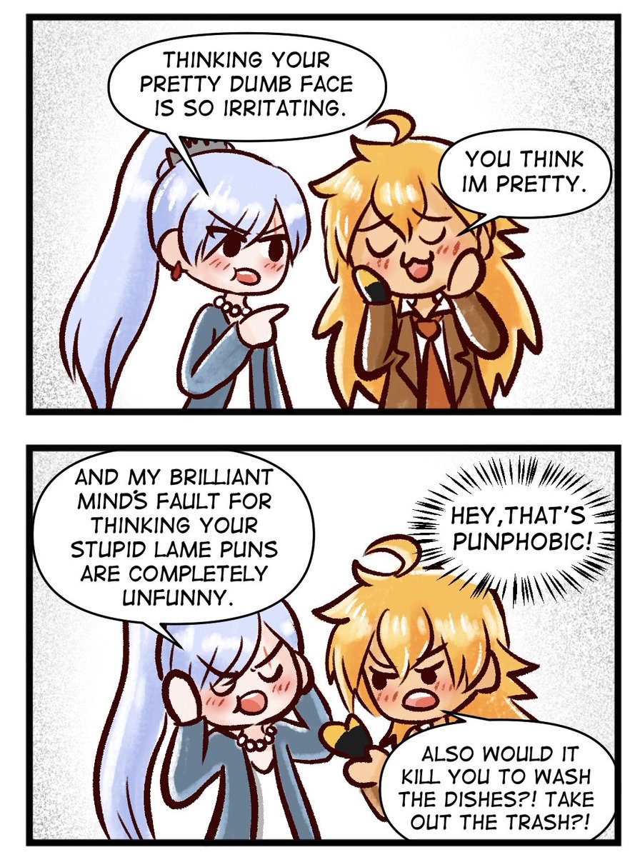 I read a fanfic the other day about these two fishing by GoldenAmaranthe and I had to do this loosely inspired comic. #RWBY #RWBYDoodleverse #bumbleby