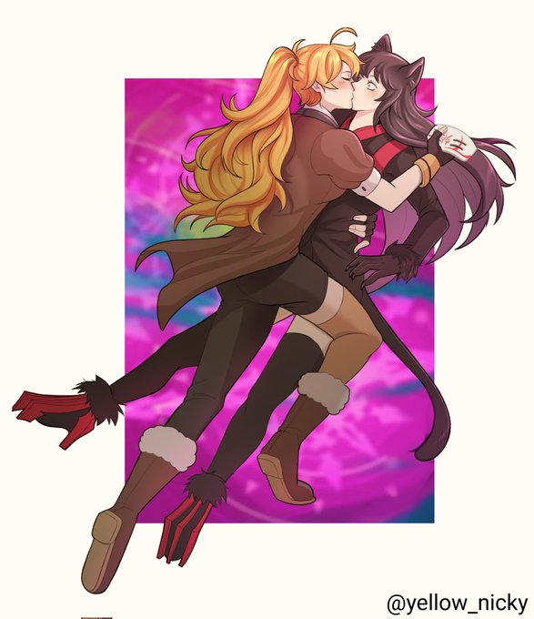 Blake and Yang in the dresses of #rwbyicequeendom @GraffartC. I loved these outfits so much! #blakebelladonna #YangXiaoLong #bumbleby #bmblby #rwbyiq For more #RWBYfanart you can follow or see my pinned tweet to c0mmission your favorite, thank you! #RWBY
