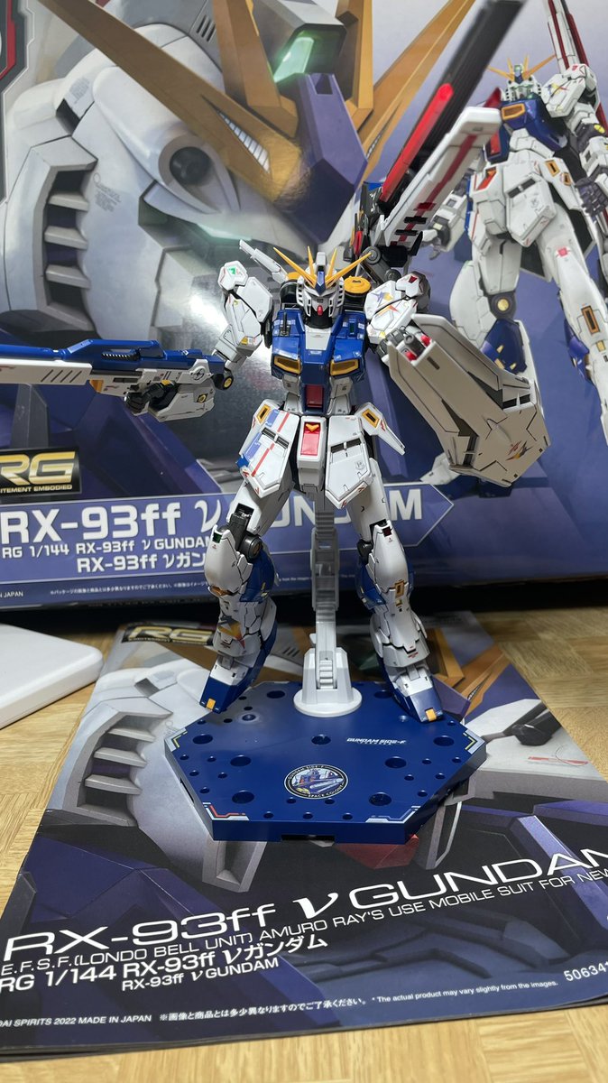 RG 1/144 RX-93ff νガンダム完成。 いつものバトルダメージやウェザリングを施したい気持ちを我慢して、キャラクターフィギュアを製作するつもりで丁寧な塗装を心掛けました。RGの精密さに惚れ惚れします! #ららぽーと福岡 #RX93ffνガンダム #ガンプラ #RG #ガンダムサイドエフ #ガンダムサイドF