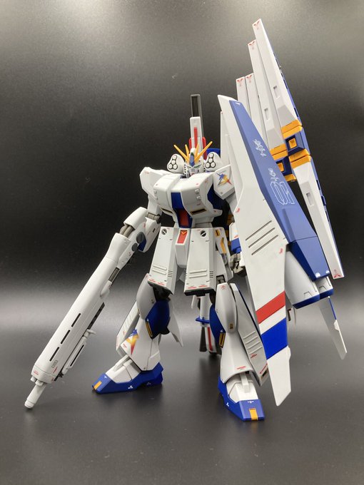 やっとデカール貼りも出来てひとまず完成しましたー!デカール多すぎてしんどかった😇 しかし苦労した分満足のいく格好良さになりました😌 #ガンプラ #ガンプラの画像貼るとRTされると聞いて #RX93ffνガンダム