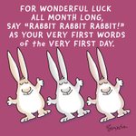 Folk wisdom has it that if you say "RABBIT RABBIT!" as your first words on the 1st of the month, you'll have good luck all month long. Hmmm. Might I suggest "RABBIT RABBIT RABBIT RABBIT RABBIT RABBIT RABBIT RABBIT RABBIT RABBIT..." #rabbitrabbit