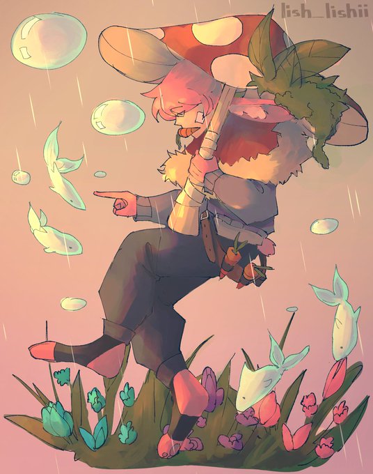 It's raining somewhere else - was really fun to take part in smt like this! ((#RabbitbladeDTIYS by @grapeichie)) #technoblade #technofanart