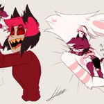 Exploring an Omegaverse AU of them having a baby, I was inspired by this song: youtu.be/TKpJjdKcjeo to draw this! ♡ My hun, @_Mina_Luna_ , helped me to name him Bucky❤️ #Hazbinhotel #radiodust