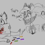 Like father like son More drawings of Angel and Alastor's child! 💖 Some friends and I were going crazy with drawings of this adorable kid, prepare to see more in the future! Bucky is such a sweetheart ❤️ #HazbinHotel #radiodust