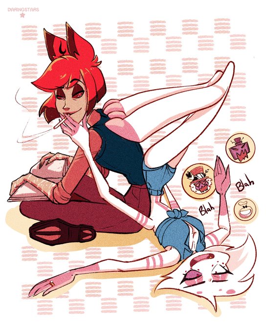 A fun day at the beach 🏖️ Had tons of fun taking part in @RadioDust_INC ‘s fanzine! Make sure to check out the whole zine with an endless number of amazing artists and writers! #radiodustINCzine #HazbinHotel #HazbinHotelFanart #radiodust #alastor #angeldust