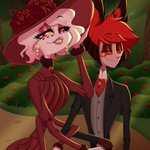 Day One of #RadioDustWeek : Victorian Era Just a little dress up for a walk in the park #SemanaRadioDust #radiodust #HazbinHotel #HazbinHotelFanart #alastor #AngelDust