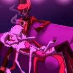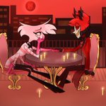 Day Five of #RadioDustWeek : cigarettes and alcohol Angel and Al helping themselves to Val’s special stash of wine and cigarettes after taking care of a little “problem”, or two 🥂 #SemanaRadioDust #radiodust #hazbinhotel #HazbinHotelFanart #Alastor #AngelDust