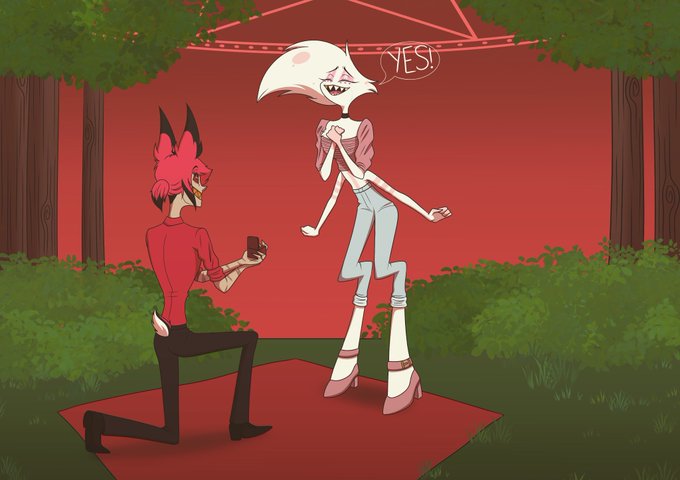 Radiodust Week Day 3: Proposal They’re in love your honor!! #radiodust #RadioDustWeek #RadioDustVip #HazbinHotel #HazbinHotelFanart #alastor #angeldust