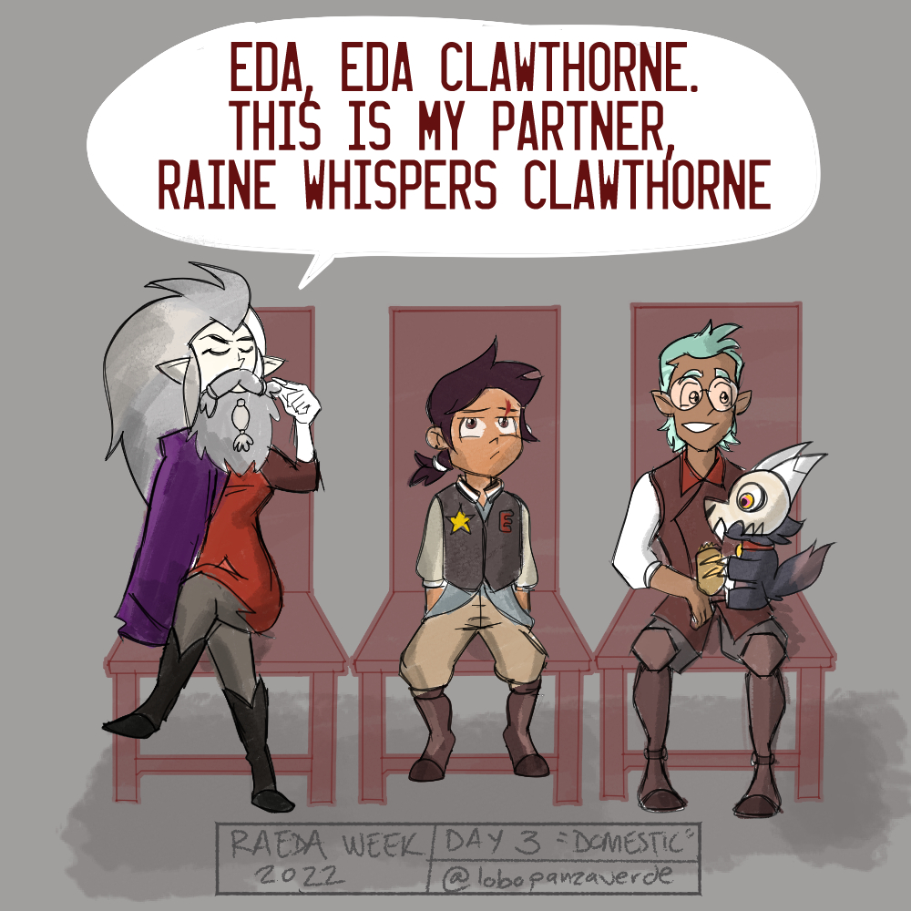 #raedaweek2022 day 3: Domestic. When your kids get in trouble, you gotta talk with the principal. #theowlhouse #tohfanart #raeda #rainewhiseprs #edaclawthorne