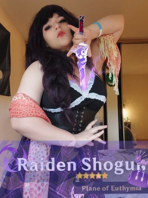 This set was cute, don't you think? Do you like Raiden or Yae more? I need to play Genshin Impact more often. I feel so behind! . . . #cosplay #raidenshogun #raidencosplay #genshinimpact #spicycosplay